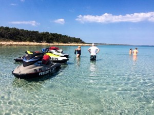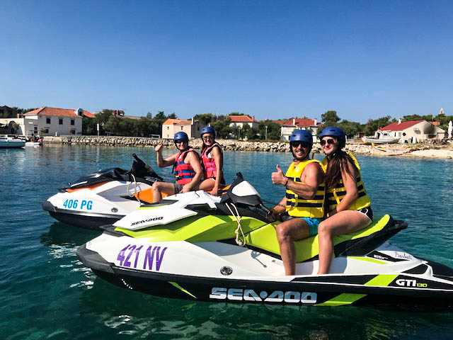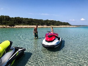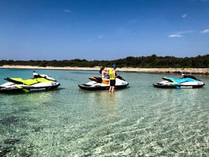 After that you will choose your Jet Ski and we will start toward the islands. First stop will be on the island of Silba, where you will visit the harbor of nice fishing village which was home of the largest fleet of merchant sailing ships in the area before First World War. After short break, we will take you to the beautiful sandy bay to enjoy short swim and look around on the island of Olib. On the way back home we will pass next to couple of small cute islands where the local fisherman fishing every morning (Planik, Planicic, Pohlib, Maun..)